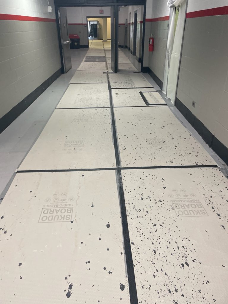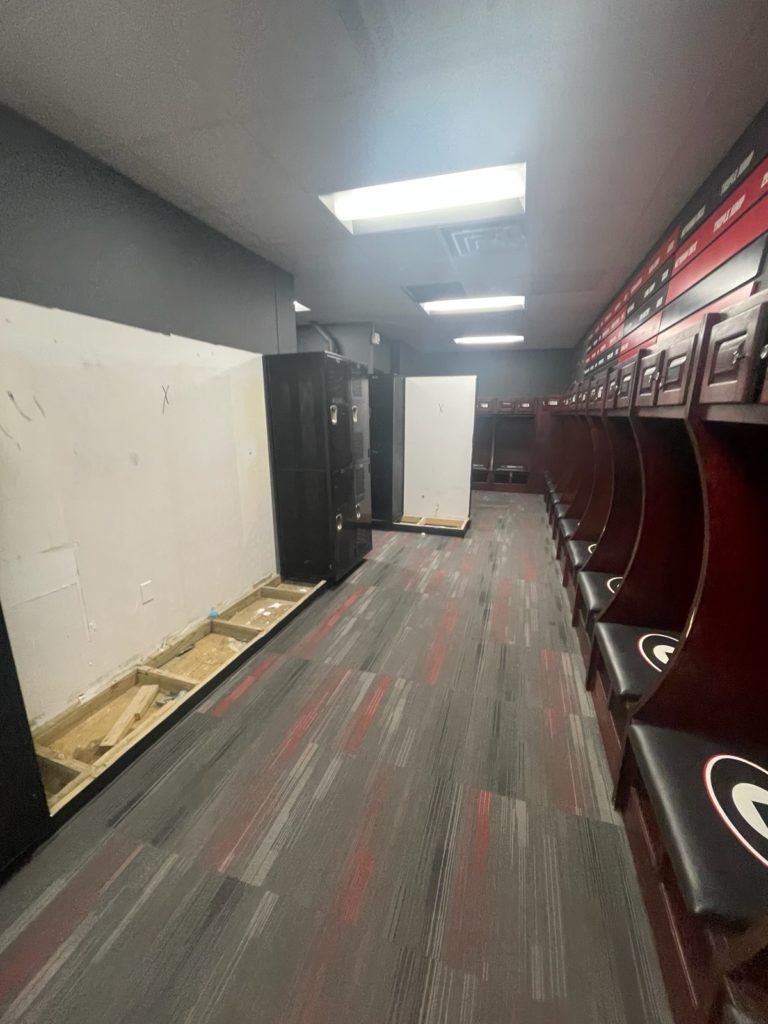 Interior demolition of walls, flooring, and bathrooms in the UGA Stegman Hall Locker room and weight rooms. This job also included cutting of concrete floors.