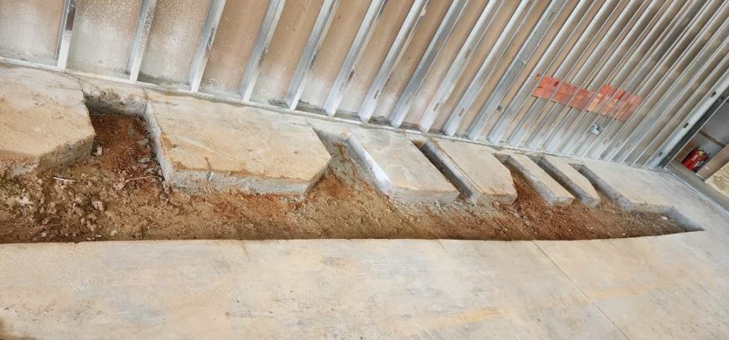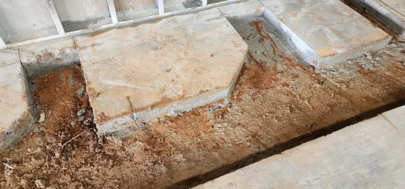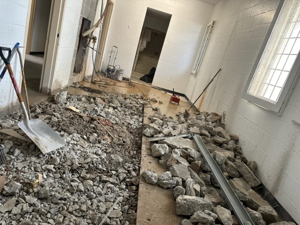 Concrete cutting and interior demolition of existing bathrooms for Renfroe Construction Co.